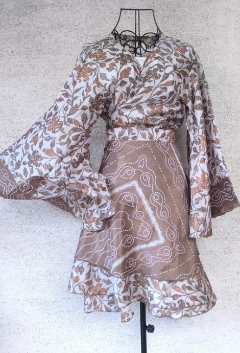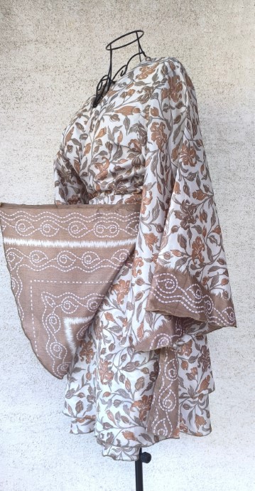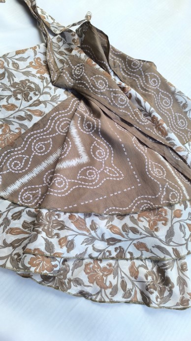 Mindkét oldala hordható, kézzel készített darabok. Felköthető szoknyának vagy ruhának.