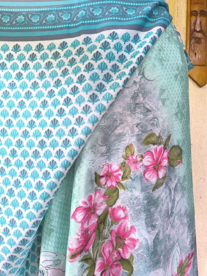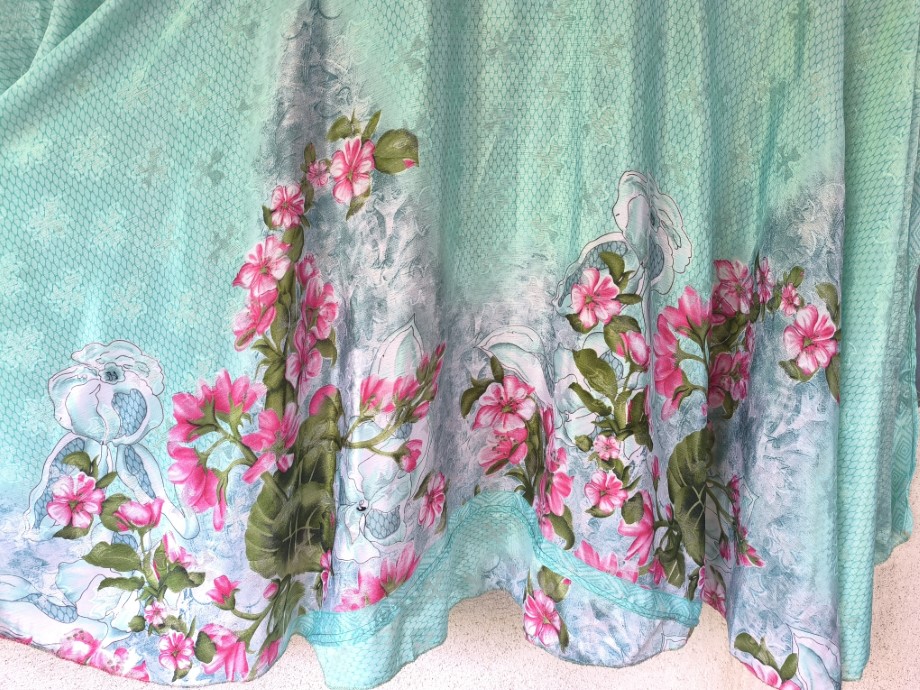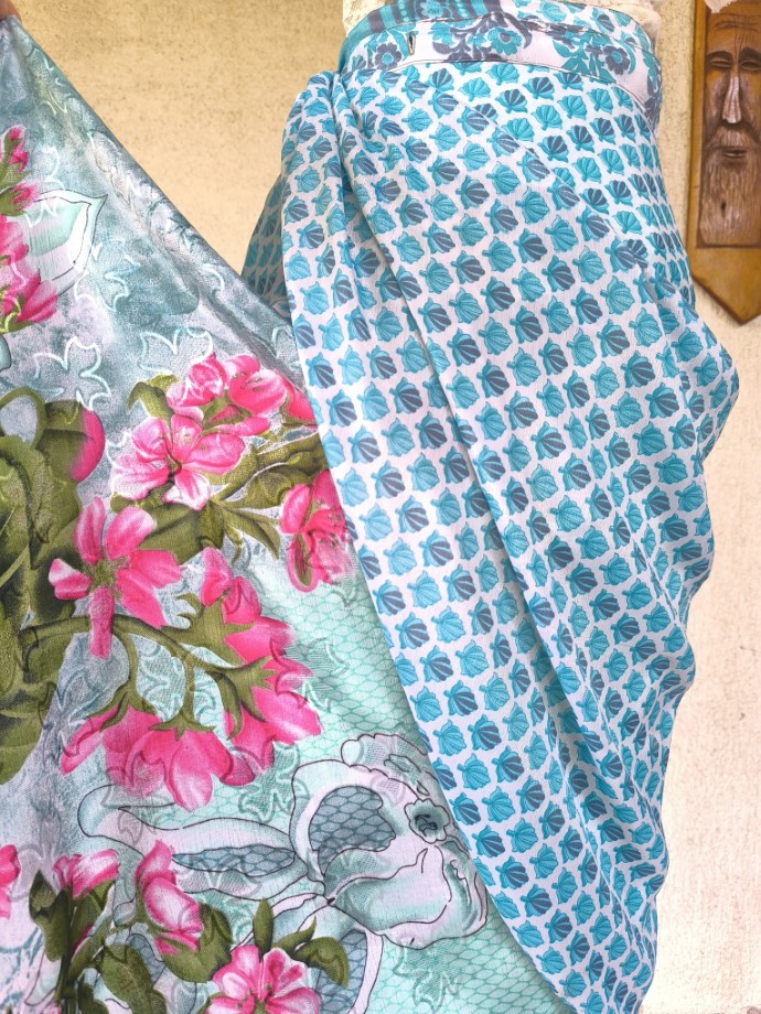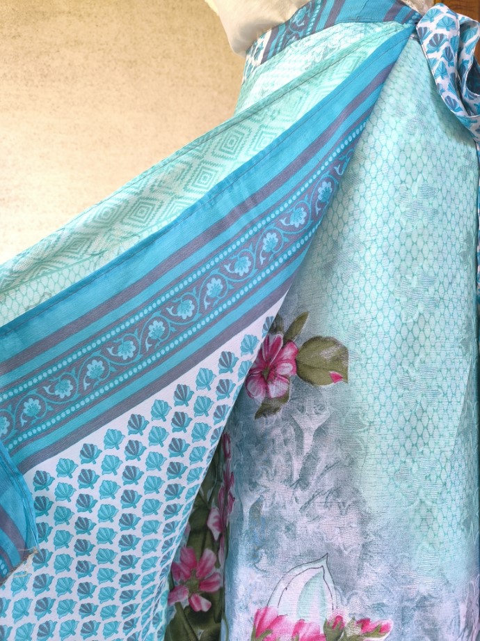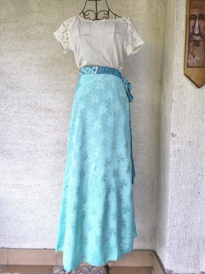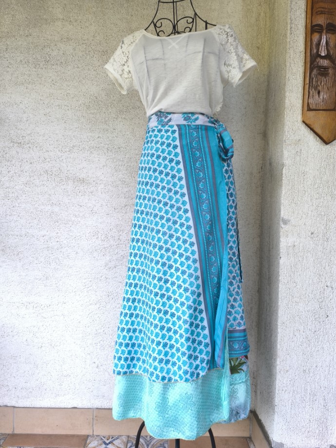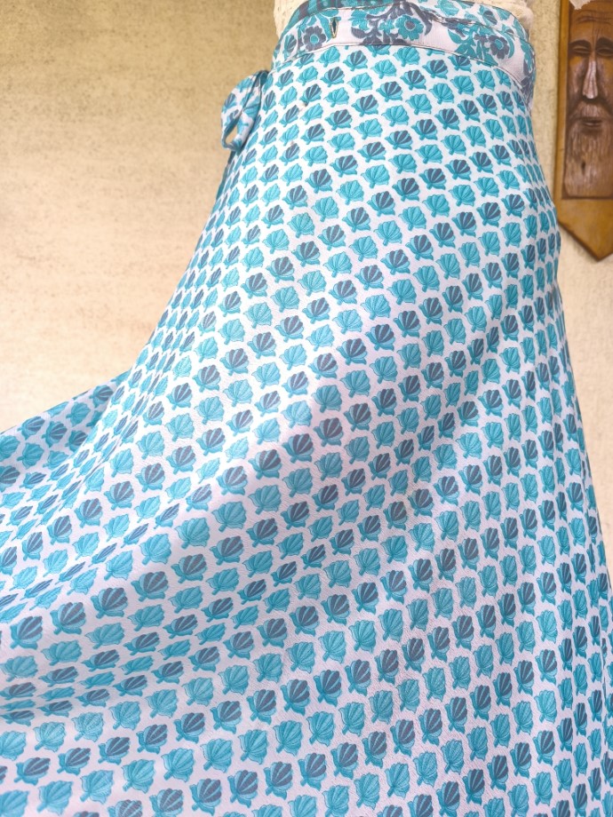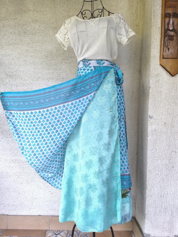 Mindkét oldala hordható, kézzel készített darabok. Felköthető szoknyának vagy ruhának.