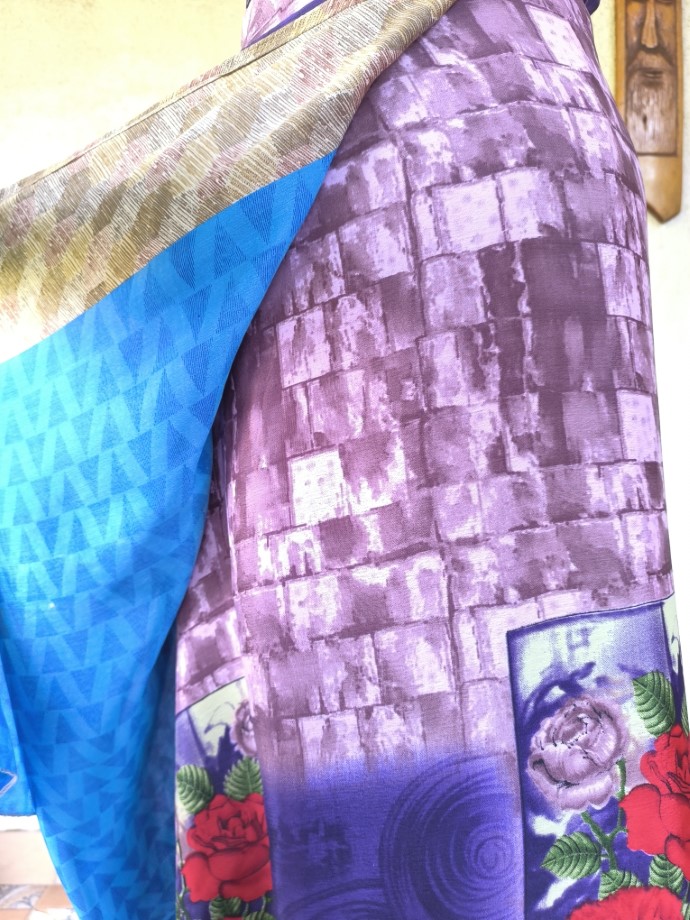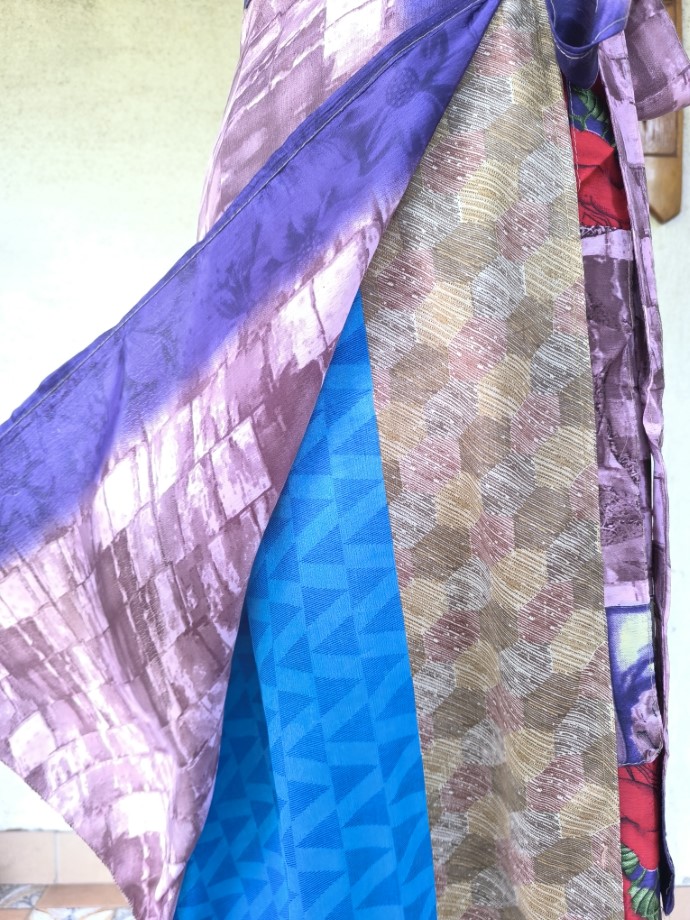 Mindkét oldala hordható, kézzel készített darabok. Felköthető szoknyának vagy ruhának.