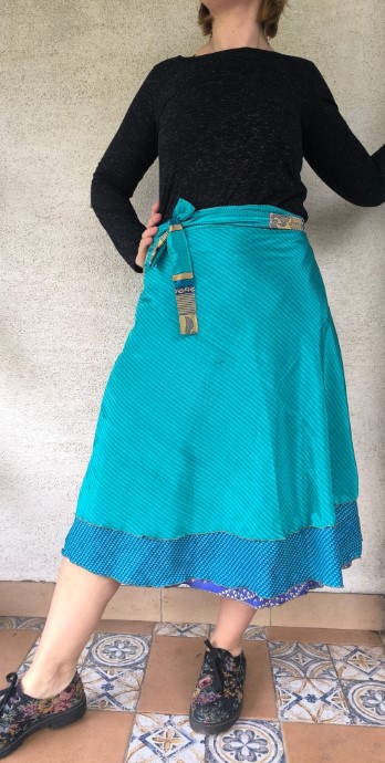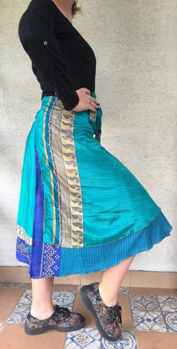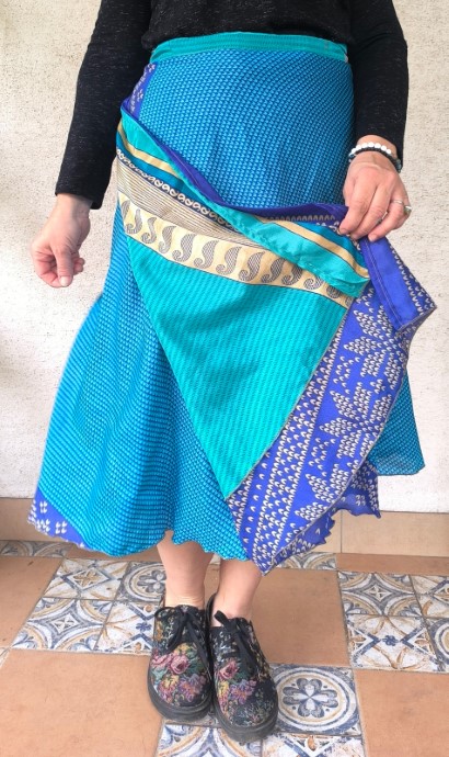 Lapszoknyáink újrahasznosított szárikból varrják.