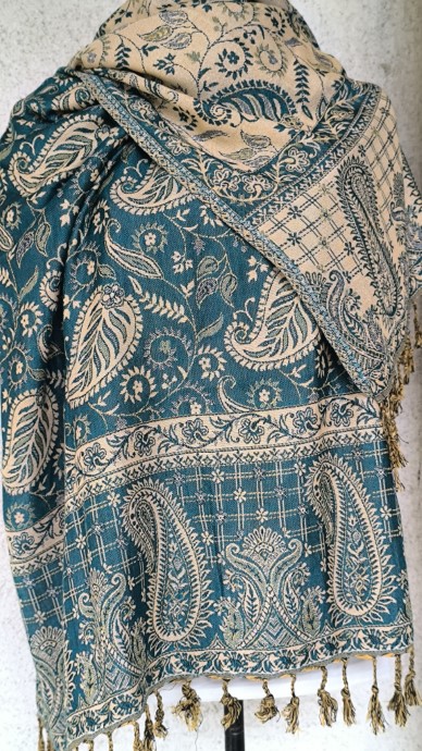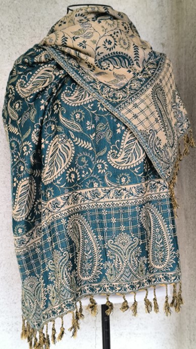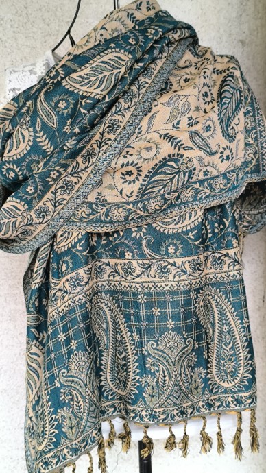 Puha meleg nagyméretű dekoratív kendő a hideg téli napokra is. Mind a 2 oldala hordható, Indiából érkezett. Farmerkabát, szövetkabát tökéletes éke lehet.