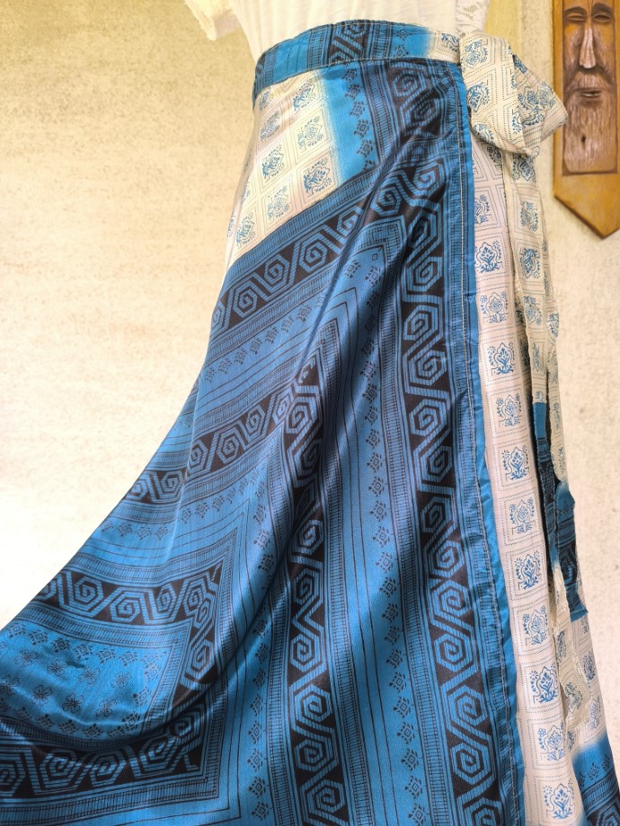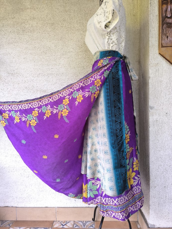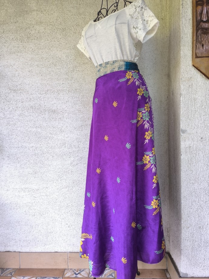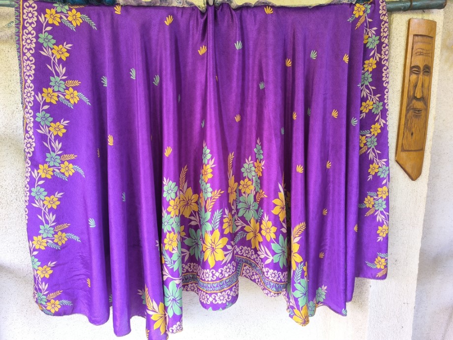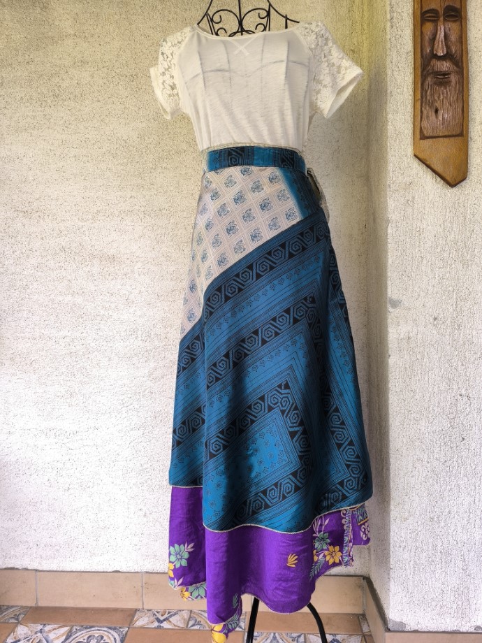 Szári szoknyáink újrahasznosított szárikból készülnek. Mindkét oldaluk hordható, kézzel készített darabok. Felköthetőek szoknyának vagy ruhának is.