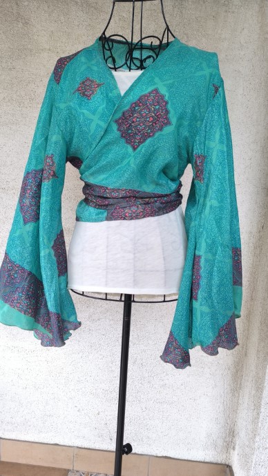 Vintage száiból készült könnyű, gyönyörű átlapolós felsők melyeket többféleképpen is fel lehet kötni.