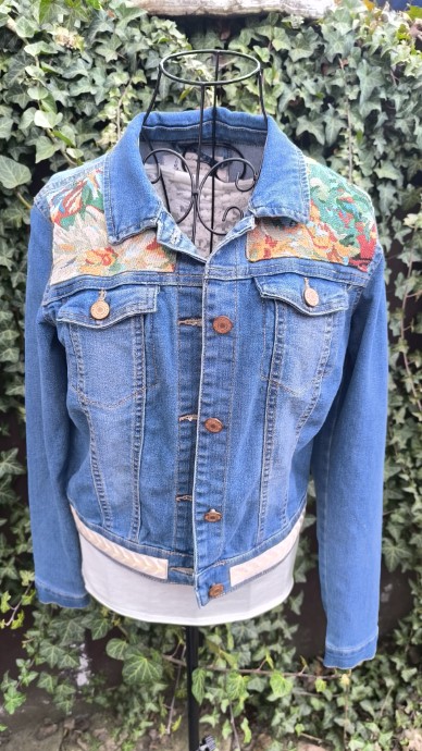 Farmerkabát új élete. Már megunt, mellőzött farmerkabátoknak adok új életet. Gépi/ kézi hímzéssel, paszomány, dekor szalagok rávarrásával, Szári és különböző anyagbetétekkel, nagyanyáink csipkéjével kombinálva vagy éppen ami jön. A kabátok tökéletes állapotúak, ha valami hiba előfordult az alapdarabon azt jelzem.