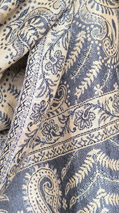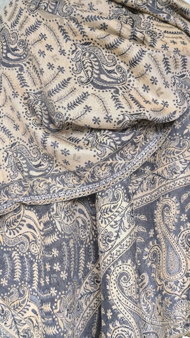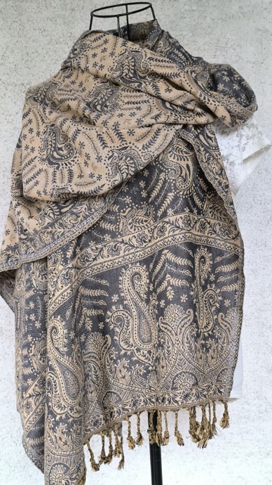 Puha meleg nagyméretű dekoratív kendő a hideg téli napokra is. Mind a 2 oldala hordható, Indiából érkezett. Farmerkabát, szövetkabát tökéletes éke lehet.