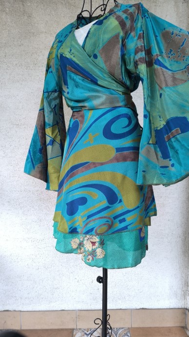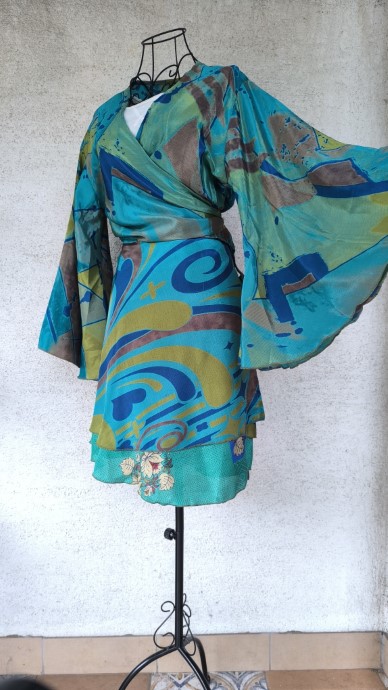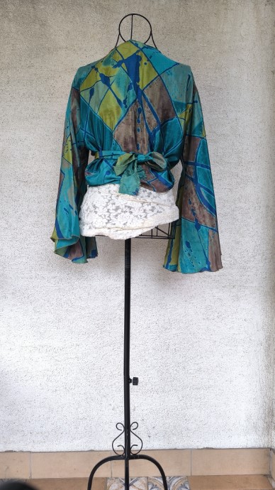 Vintage száiból készült könnyű, gyönyörű átlapolós felsők melyeket többféleképpen is fel lehet kötni.