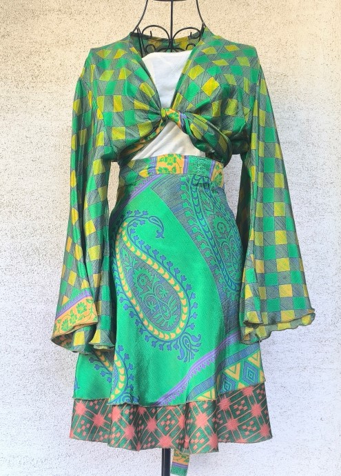 Lapszoknyáink újrahasznosított szárikból készülnek.