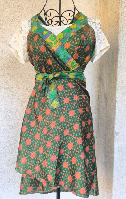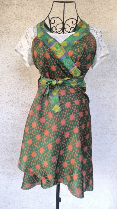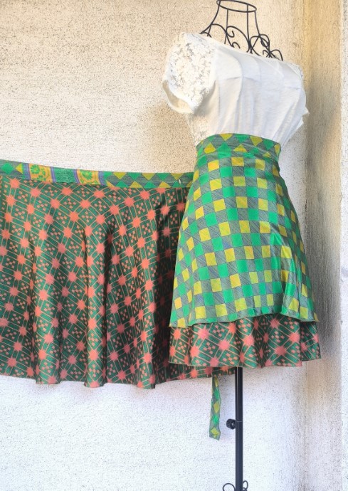 Mindkét oldala hordható, kézzel készített darabok. Felköthető szoknyának vagy ruhának.