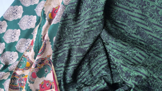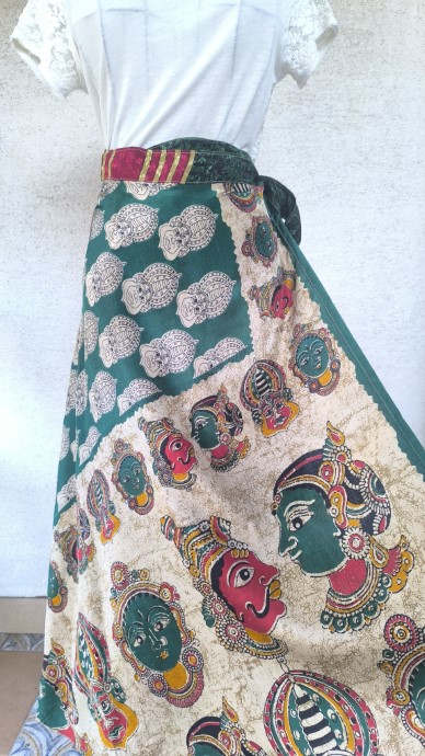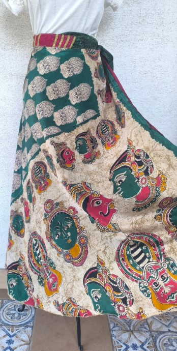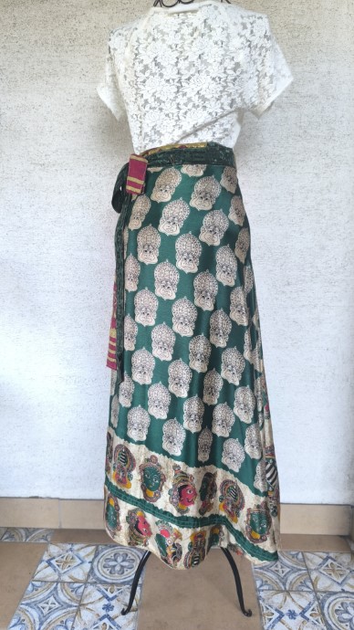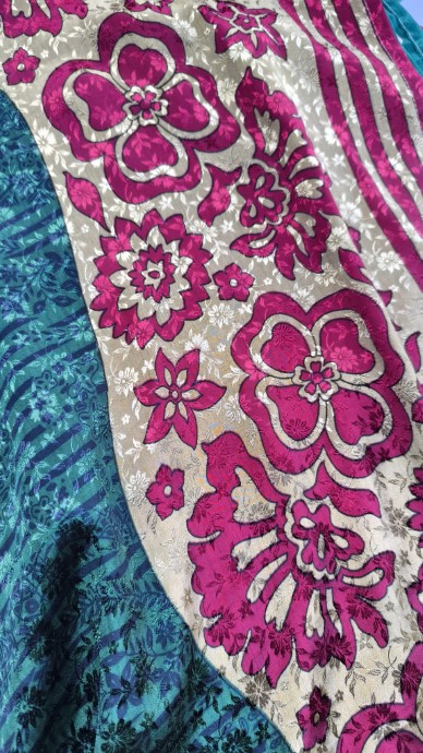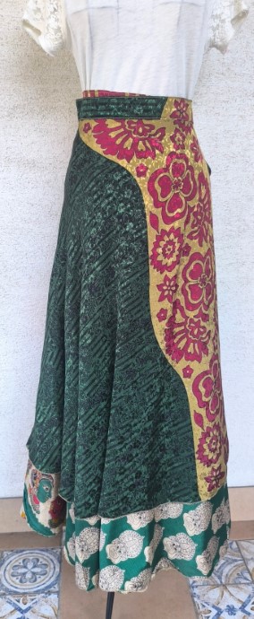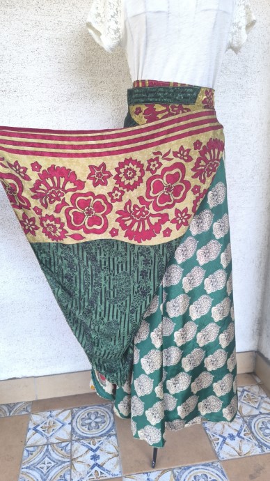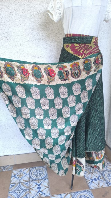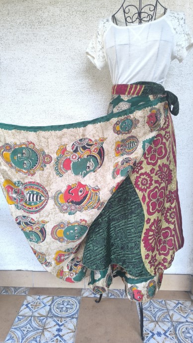 Szári szoknyáink újrahasznosított szárikból készülnek. Mindkét oldaluk hordható, kézzel készített darabok. Felköthetőek szoknyának vagy ruhának is.