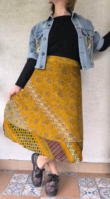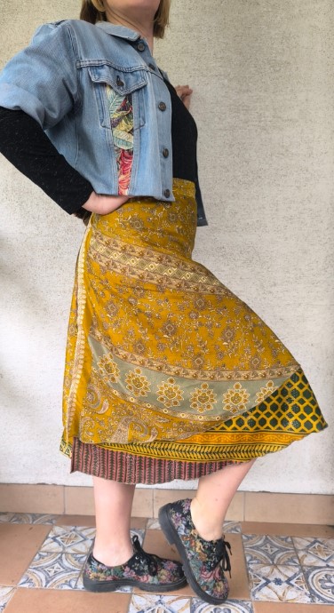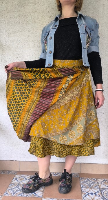 Lapszoknyáink újrahasznosított szárikból készülnek.
