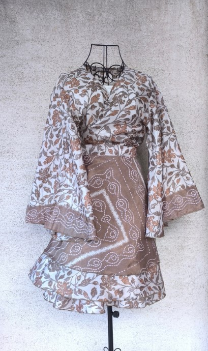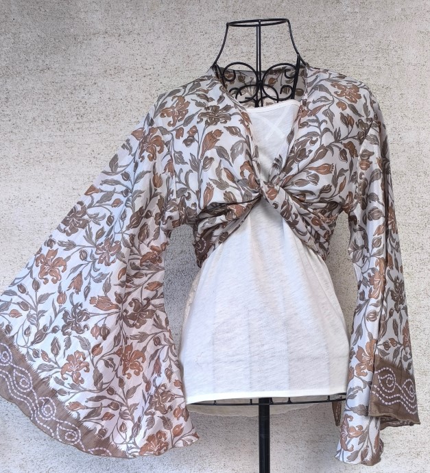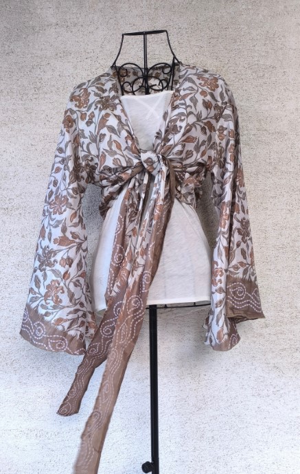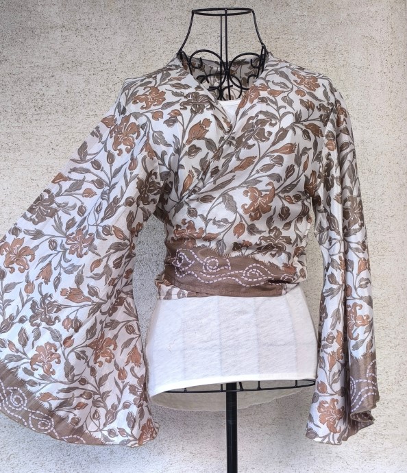 Átlapolós felsőink vintage száriból készültek. Mivel újrafelhasznált kézzel készültek, így mindegyikből egy darab készül.