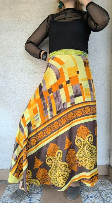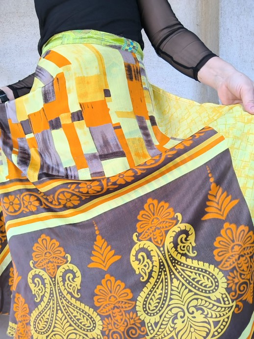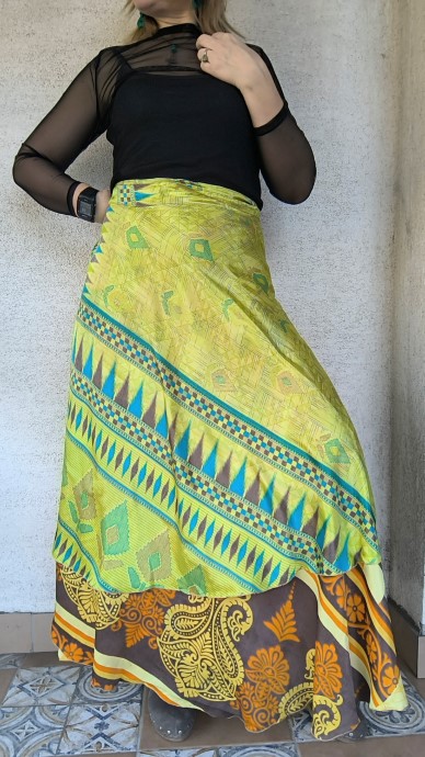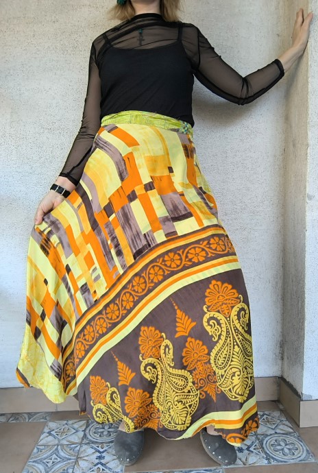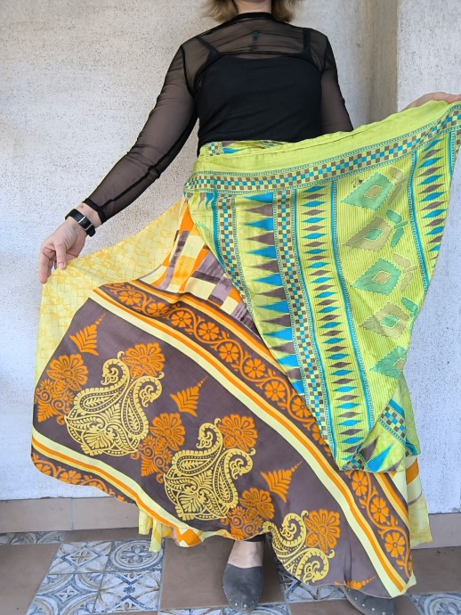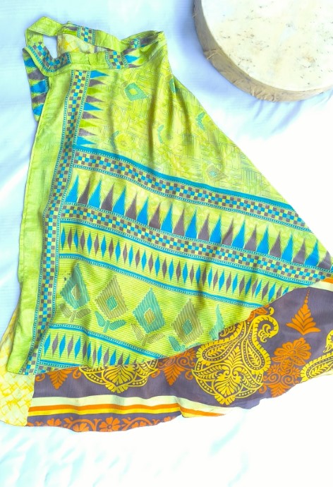 Szári szoknyáink újrahasznosított szárikból készülnek. Mindkét oldaluk hordható, kézzel készített darabok. Felköthetőek szoknyának vagy ruhának is.